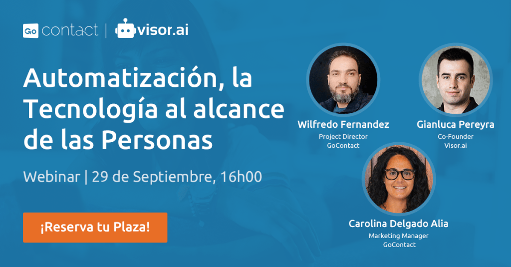 Automatización, la optimización de la tecnología al alcance de las personas. Recientemente, GoContact y Visor.ai han desarrollado una alianza estratégica en el área de la Inteligencia Artificial, con el objetivo de optimizar, potenciar y agilizar el Servicio de la Atención al Cliente, tanto para los equipos que lo trabajan como para el Cliente.