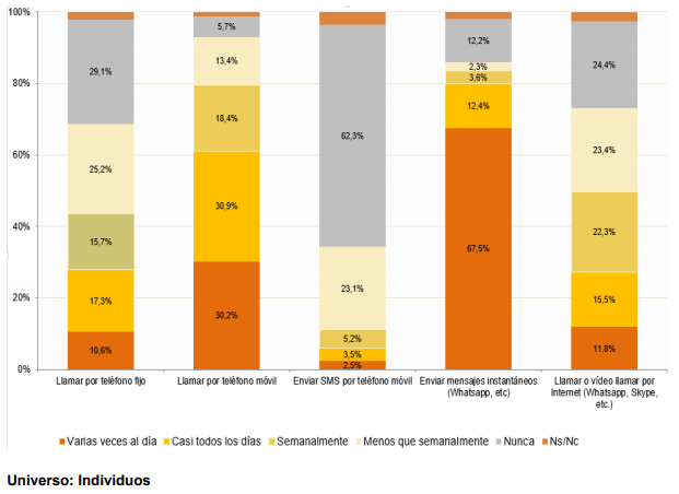 Los datos de esta encuesta reflejan la situación de mercado durante la pandemia de COVID-19. En plena pandemia, por ejemplo, casi se duplicó el uso de las videollamadas y las llamadas por Internet, mientras que el visionado diario de vídeos creció un 37%. La mensajería online es el servicio más utilizado por los usuarios para comunicarse, por delante de las llamadas con el móvil.
