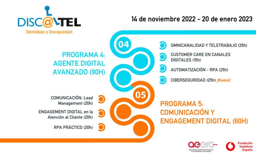 Estos cursos están dirigidos a personas con discapacidad dentro del proyecto Discatel. Dichos cursos van de la mano de la AEERC y la Fundacion Vodafone España.