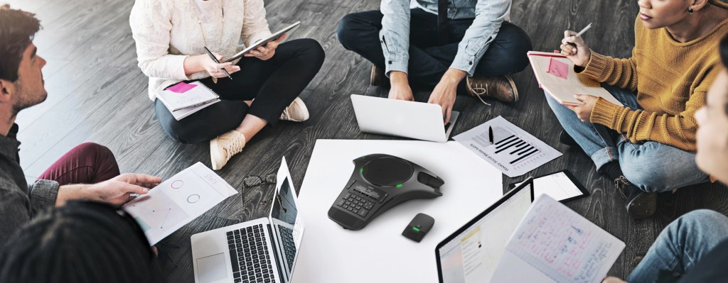 Basada en DECT, esta innovadora solución acaba por fin con el habitual caos de cables sobre y bajo las mesas de reuniones. Ofrece a los usuarios la posibilidad de convertir prácticamente cualquier espacio en una sala de conferencias.