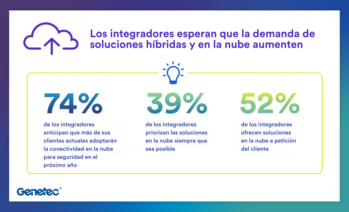 Los comentarios de los integradores también respaldan la idea de que los usuarios finales están cambiando con entusiasmo hacia las soluciones en la nube. Un sustancial 74% de los integradores encuestados a nivel global y en Latinoamérica anticipan que más de sus clientes actuales adoptarán la conectividad en la nube para seguridad electrónica en el próximo año. En México, incluso, hay una visión más optimista con un 85%. Además, el 39% de los integradores a nivel global y en Latinoamérica afirmaron que dan prioridad a las soluciones basadas en la nube siempre que sea posible, y un 52% adicional ofrece soluciones basadas en la nube a petición del cliente.