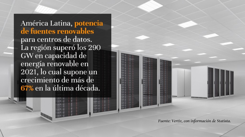 - Uso de energías renovables: La adopción de fuentes renovables, como las energías solar o eólica, puede tener un efecto significativo en la reducción de la huella de carbono de los centros de datos de ahora y del futuro. En este contexto, América Latina cuenta con una gran abundancia de fuentes de energía limpia.