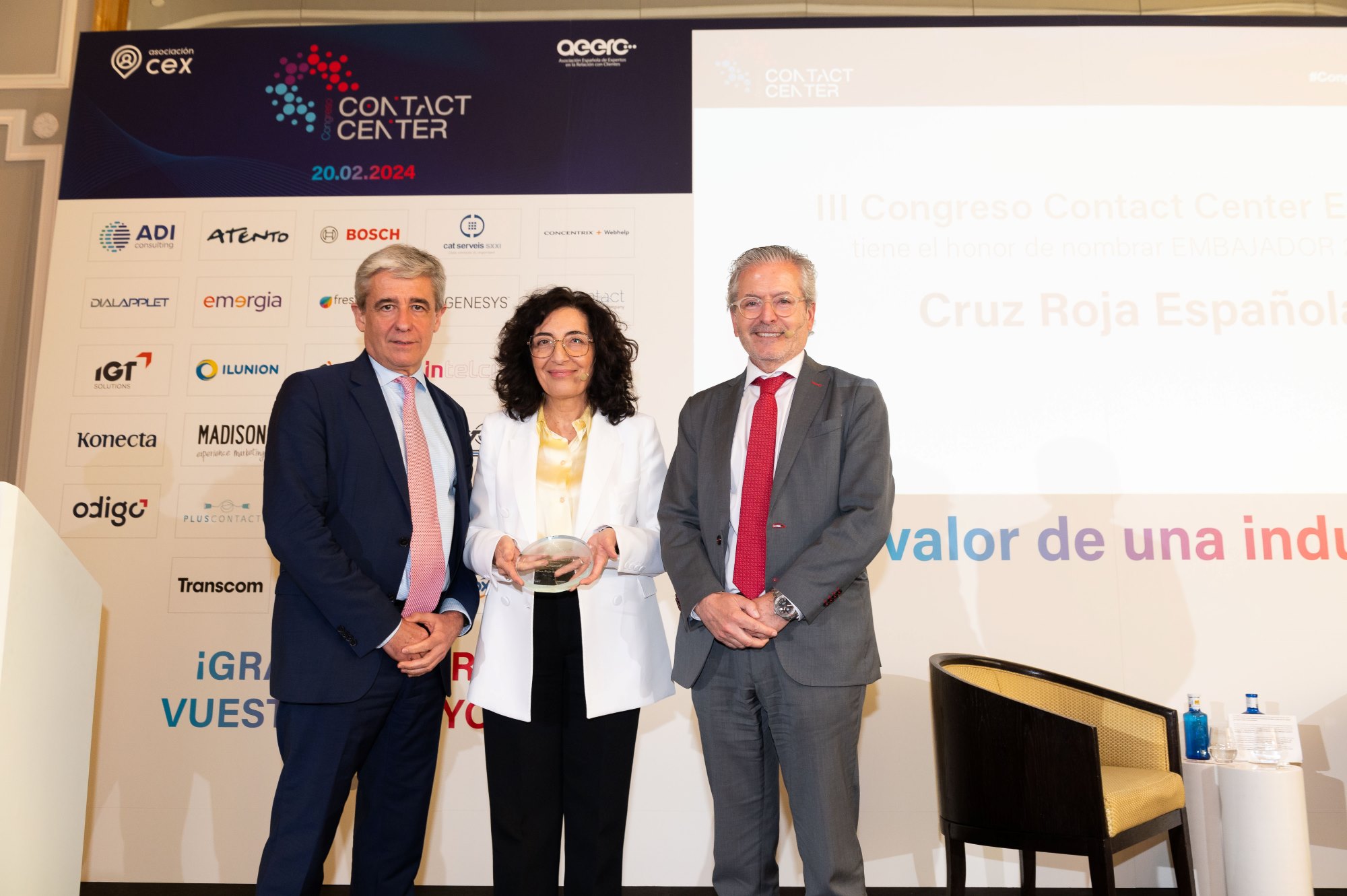 El broche del encuentro lo puso la entrega del reconocimiento al Embajador del Contact Center 2024 concedido a Cruz Roja Española por su labor social, sirviendo de punto de contacto fundamental para interactuar de una manera más efectiva con la ciudadanía. Su presidenta, María del Mar Pageo, acudió a recoger el galardón agradeciendo el aprendizaje adquirido durante la jornada, muy útil para el proceso de transformación que atraviesa la entidad, que apuesta por una “tecnología humanitaria” en el que sus centros de contacto le están permitiendo “llegar a personas en situación de vulnerabilidad con mayor facilidad, ampliando, mejorando y diversificando los servicios gracias a estas soluciones”.
