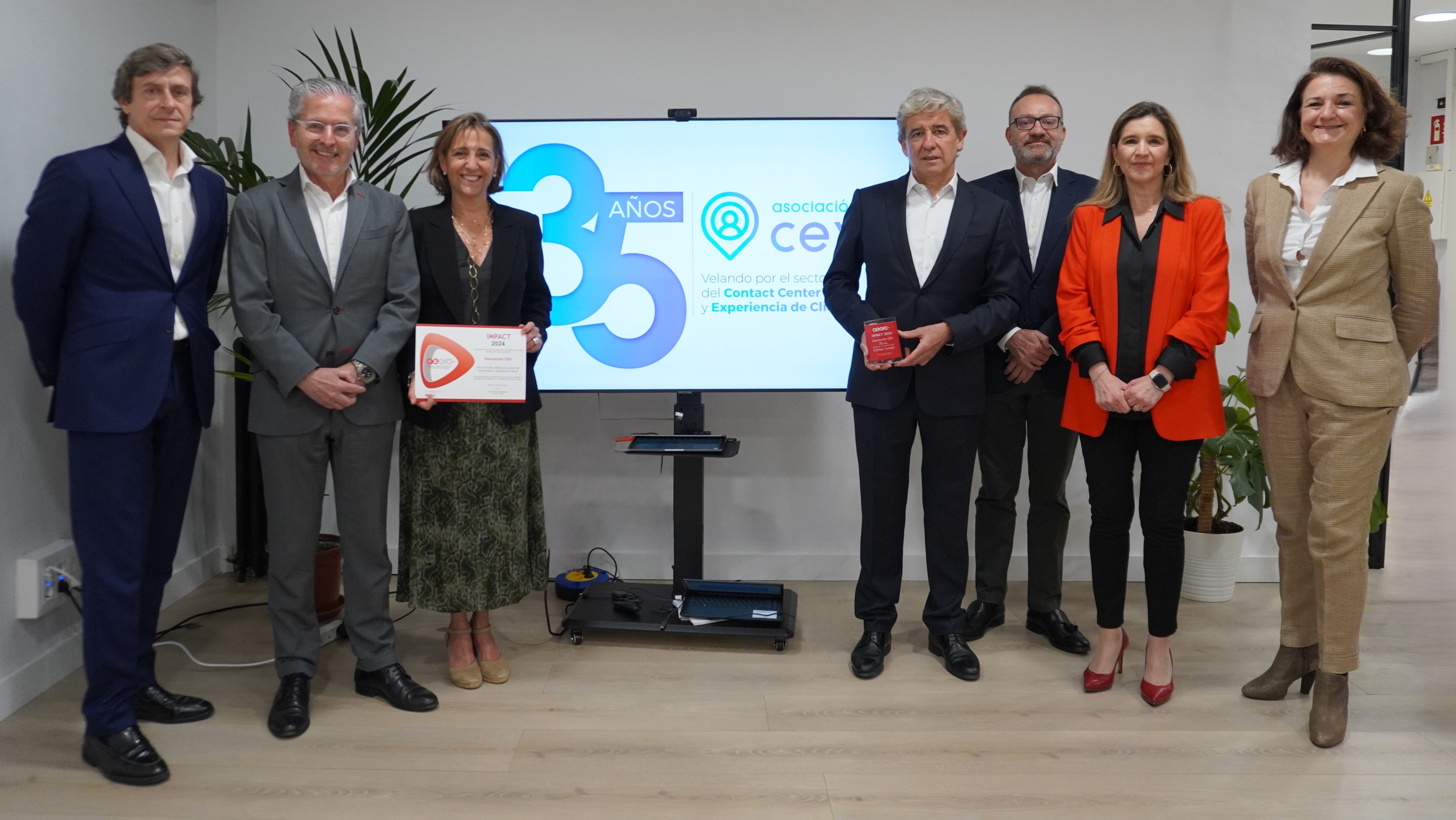 La Asociación Española de Expertos en Relación con Clientes (AEERC) ha hecho entrega del reconocimiento IMPACT 2024 a la Asociación CEX (Asociación de Compañías de Experiencia con Cliente), que está celebrando 35 años de apoyo al sector del Contact Center.
