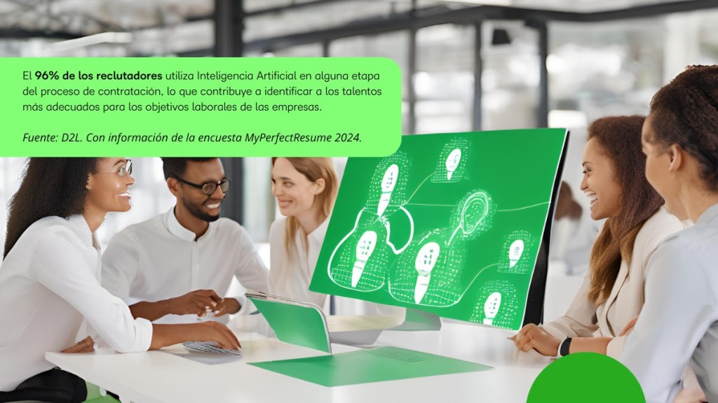 Tecnologías disruptivas como la inteligencia artificial, están ayudando en este proceso, permitiendo a los reclutadores identificar y seleccionar, de manera más rápida y precisa, a los candidatos cuyas competencias se ajusten tanto a las necesidades técnicas del puesto, como a la cultura organizacional y a los objetivos de la empresa. Según la encuesta de contratación MyPerfectResume 2024, el 96% de los reclutadores utilizan IA en alguna etapa del proceso de contratación, lo que ha mejorado la eficiencia y la precisión en la selección de talento. De esta manera, pueden construir equipos más alineados con las metas empresariales, lo que se traduce en un mayor rendimiento y éxito empresarial.