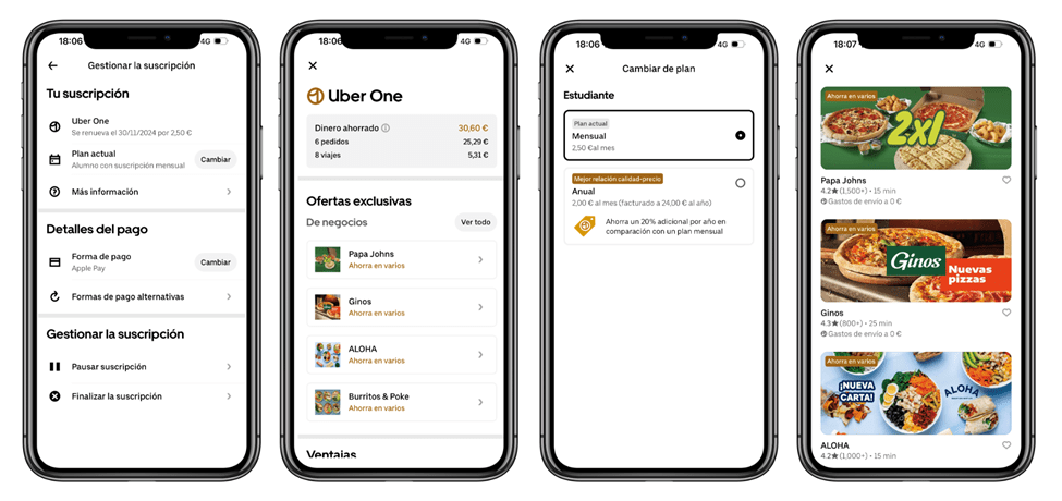- Ofertas y promociones exclusivas: Uber One para Estudiantes incluye acceso a descuentos y promociones especiales en colaboración con sus restaurantes favoritos, como McDonald’s, Popeyes, Carl’s Jr, Tony Romas o Papa Johns, lo que facilita aún más la vida universitaria.