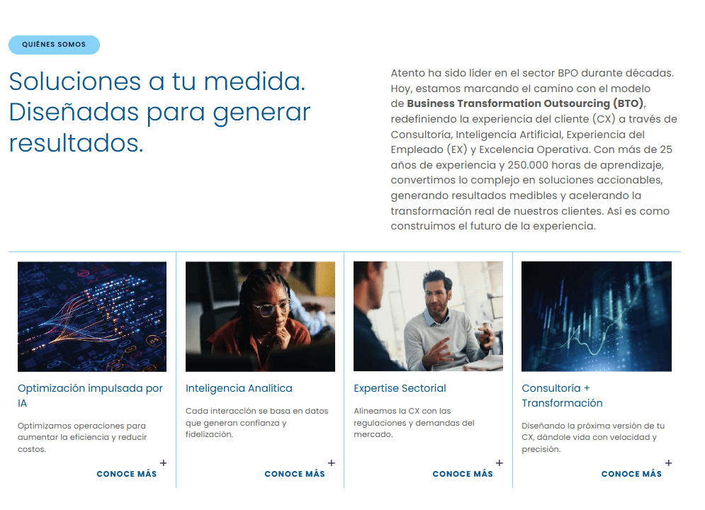 - Más de 150 clientes ya operan bajo el modelo BTO de Atento, impulsando la transformación empresarial con soluciones tecnológicas conectadas por personas