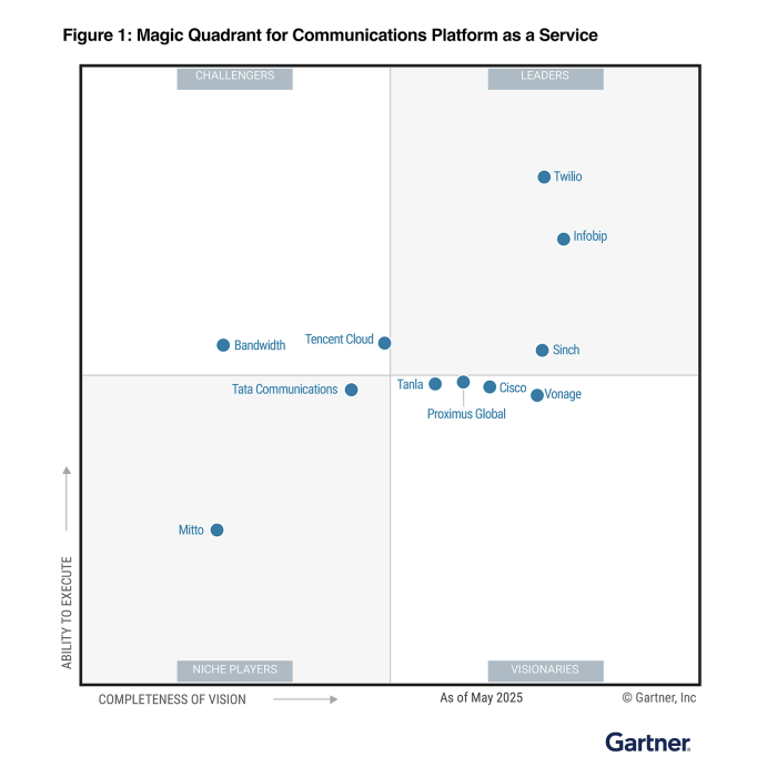 Infobip obtuvo la posición más alta en términos de integridad de la visión. Infobip ha sido nuevamente reconocida líder en el cuadrante mágico (Magic Quadrant) de Gartner de 2025 para plataformas de comunicaciones como servicio (CPaaS). Este año, la empresa se sitúa en el primer puesto en la categoría Integridad de la visión. Infobip considera que … Continuar leyendo Infobip elegida Líder en CPaaS en el Magic Quadrant™ 2025 de Gartner® por tercer año consecutivo