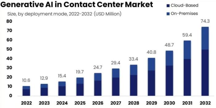 el mercado de la IA Generativa en Contact Center alcanzará los 74,3 millones de dolares en 2032