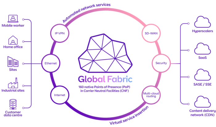 BT prueba en directo su nueva plataforma de red como servicio (NaaS) preparada para la IA Los puntos de presencia (PoP) de Global Fabric ya están instalados en más de 45 de los principales centros de datos en la nube del mundo. La demostración del portal de gestión permite a los clientes experimentar con las … Continuar leyendo BT prepara a sus clientes para Global Fabric para que puedan funcionar en la nube